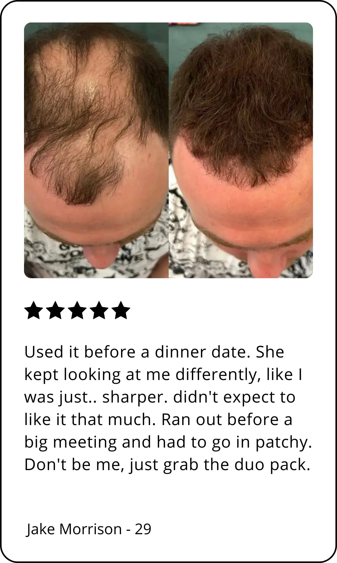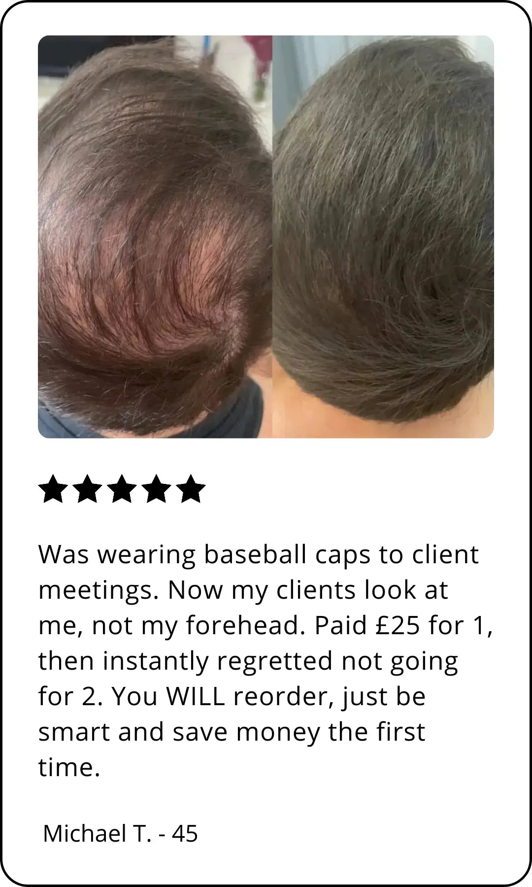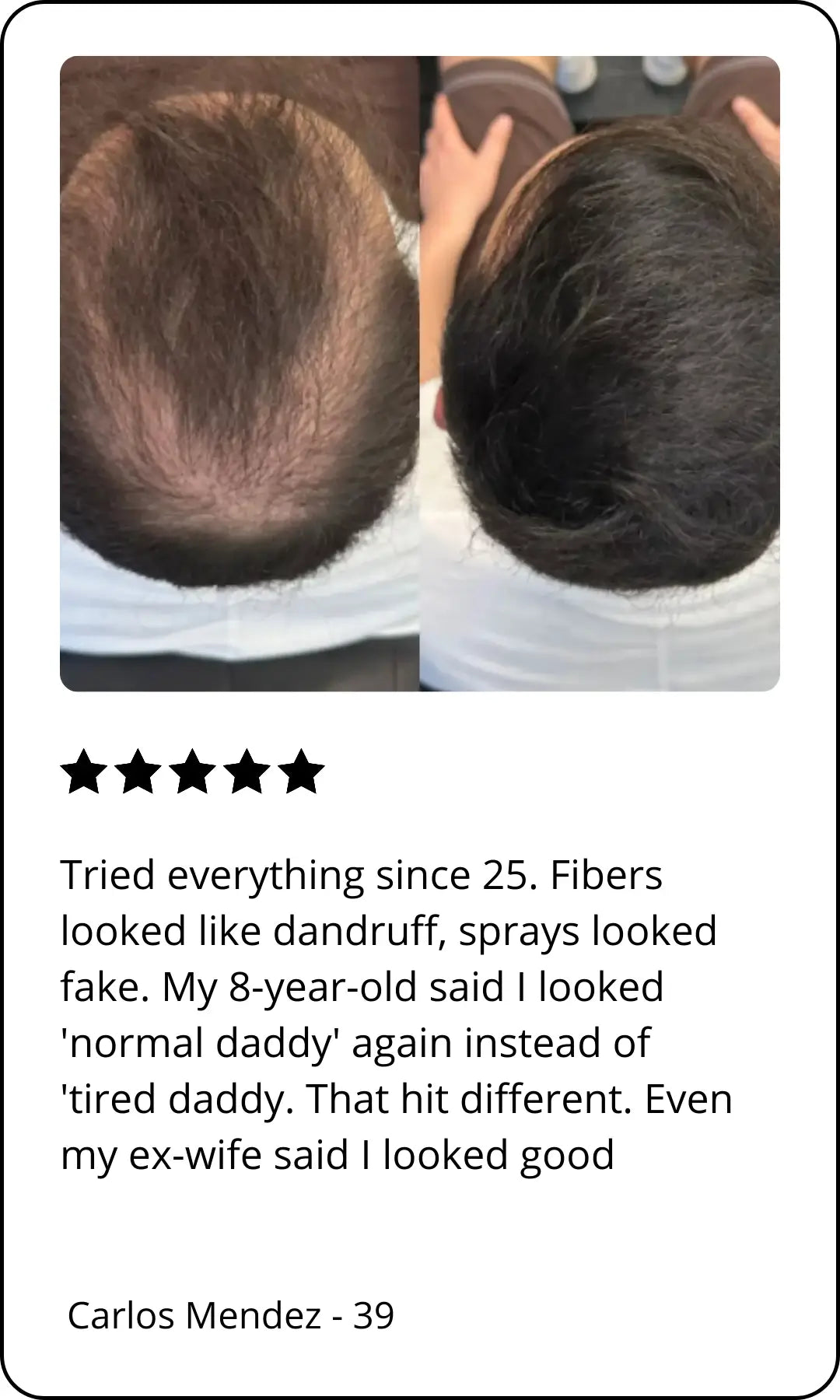 Instantly covers bald spots and thinning hair with the new grooming essential tool for men with hair loss.