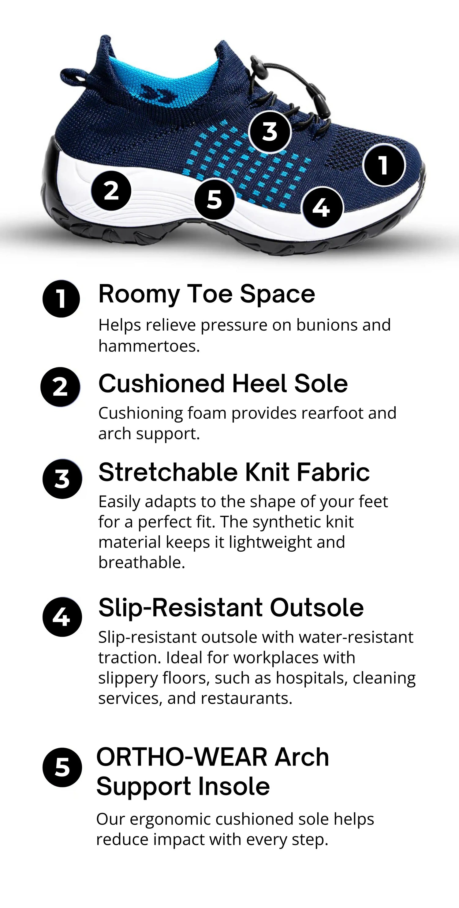 Designed with orthopaedic specialists, our footwear supports your feet through demanding days in healthcare and beyond. With cushioned heels, supportive arch insoles, roomy toe space, and shock-absorbing soles, they help relieve common issues such as foot pain, plantar fasciitis, bunions, neuropathy, flat feet, hammer toes, Morton’s neuroma, tendonitis, and even back pain—providing lasting comfort and protection all day long.
